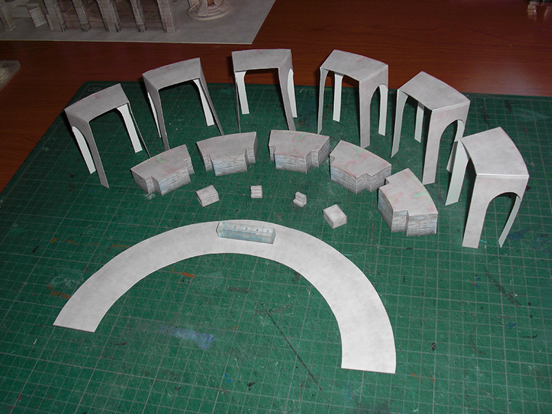 Pliage, et collage des longues pièces en blocs, voici l'ensemble des éléments qui vont servir à obtenir les arcades des tigres.