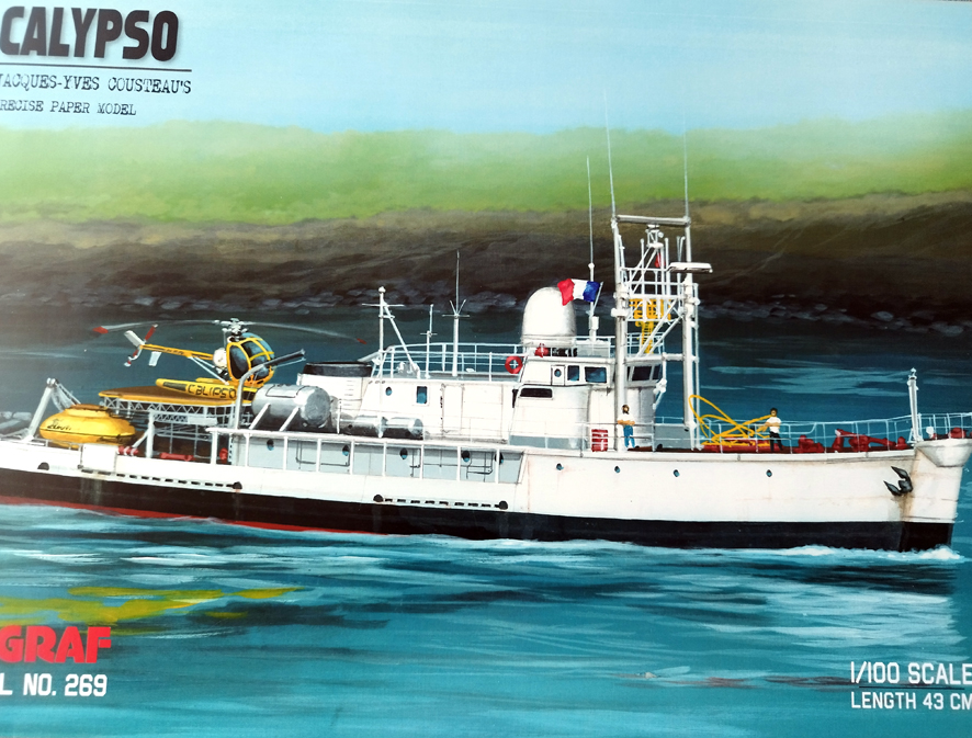 Bonjour, je vous présente une maquette que j'ai récemment acquise lors d'une vente aux enchères chez « Answer ». Il s'agit du navire de recherche Calypso du capitaine Jack Cousteau, à l'échelle 1:100. Les éléments et les détails sont très bien imprimés. L'édition comprend de nombreux plans d'assemblage détaillés, dont beaucoup sont en couleur.