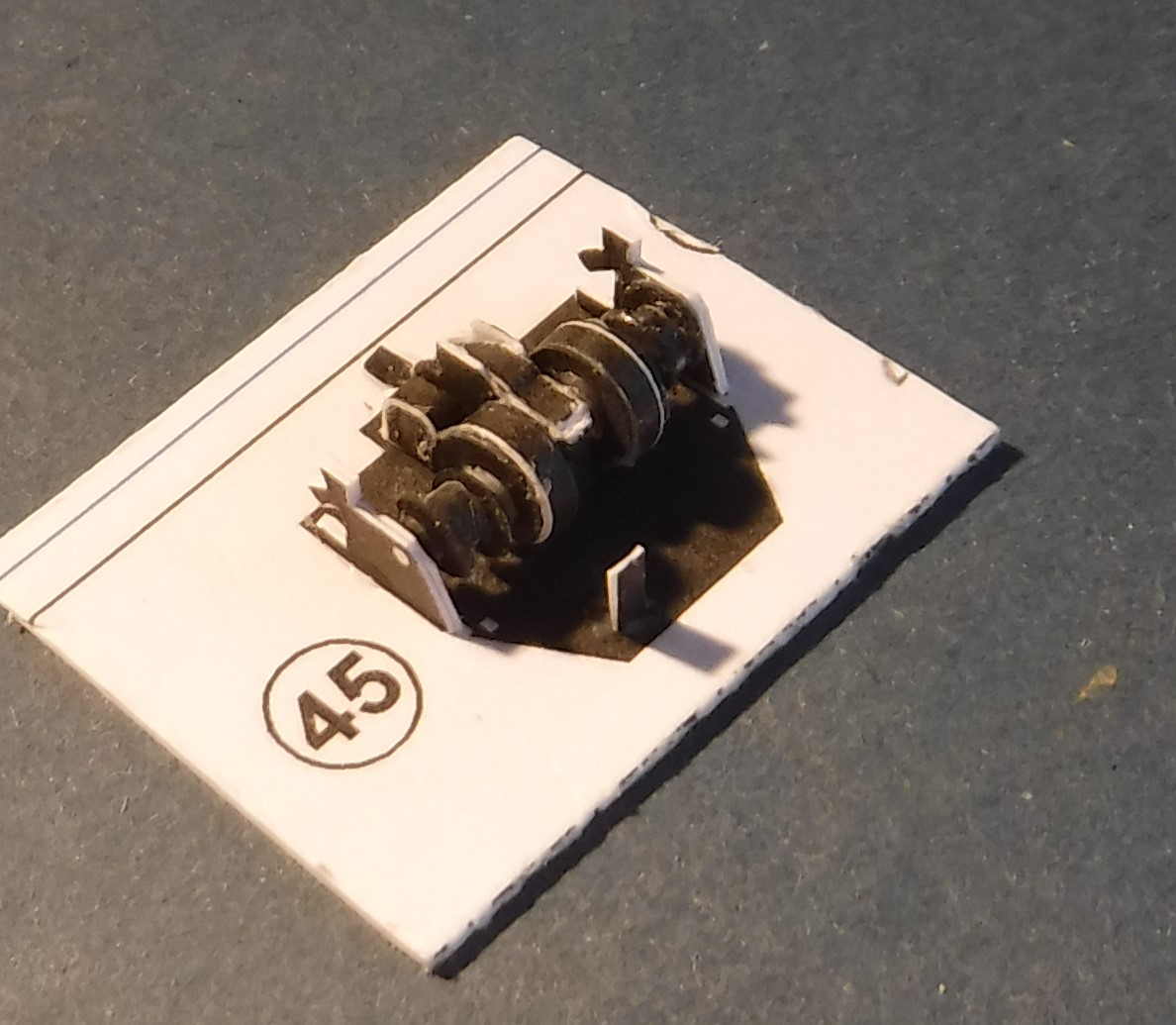 Le treuil du bateau ne sera découpé dans la tôle qu'une fois terminé, afin que je puisse facilement assembler le petit modèle...