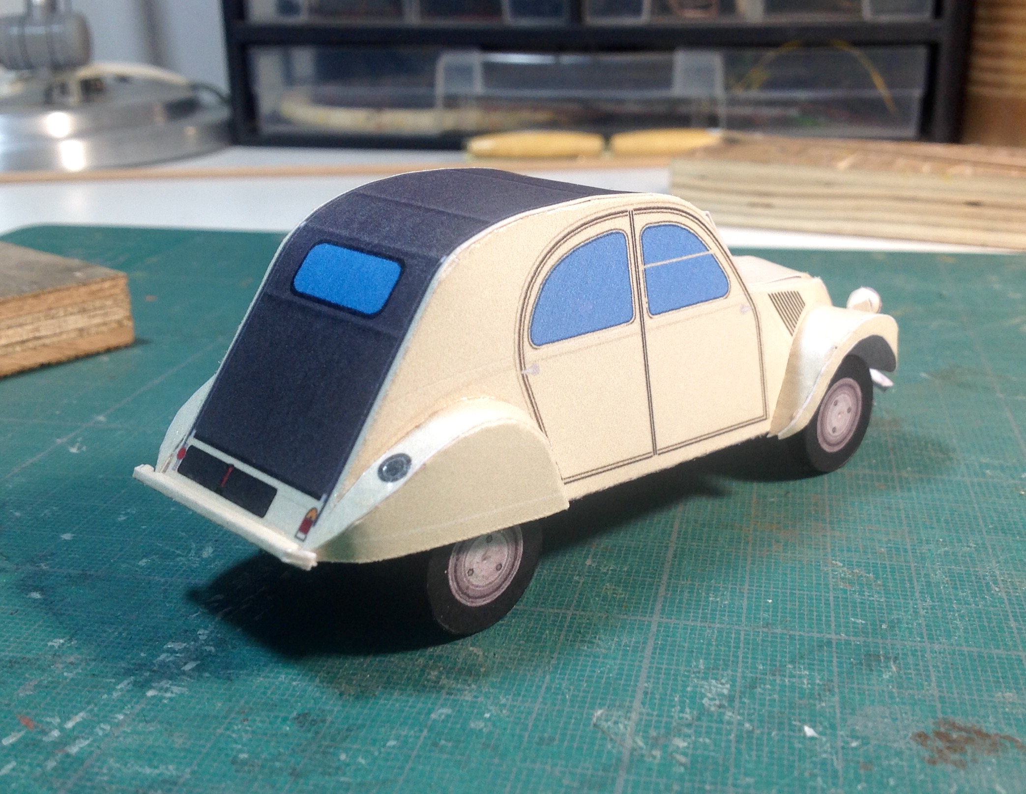 Et encore une 2cv trouvée sur papertoy, donnée pour l'échelle 1/30, dispo en 3 couleur. Joli modèle assez cool à monter.