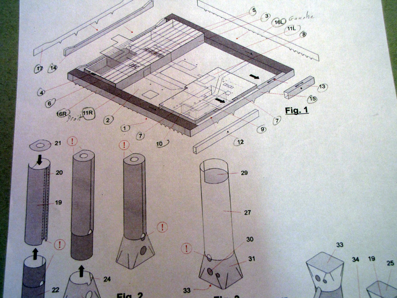 Les 4 piliers d'angles préts à assembler et les 4 étaits :