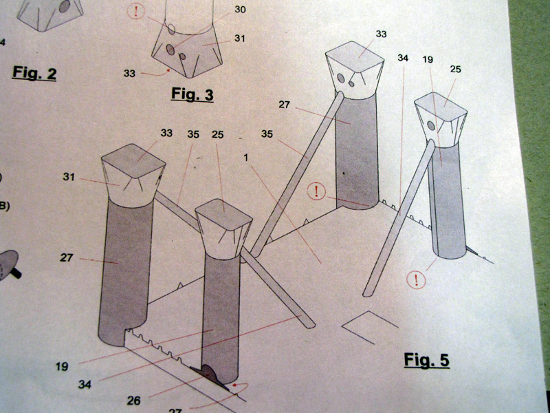 Les parties des barres de liaison entre piliers : et l'ensemble fixé aux flotteurs : puis une vue des renforts entre piliers : et 2 vues arrière et avant :