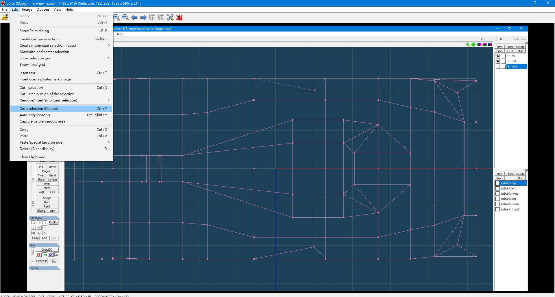 Dans un logiciel photo (ici irfanview), selectionner la surface and decouper ('crop' en anglais)