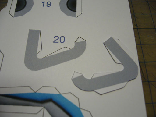 Toutes les pièces découpées, on voit bien les pattes à rajouter pour un des deux supports.